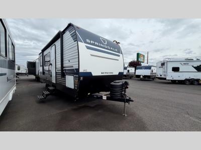 The Springdale Classic travel trailers by Keystone will provide you and your family many great outdoor experiences and it will also be kind to your pocketbook. Each one is constructed with a walkable roof and an I-beam frame with stamped steel cross-members and outriggers for added strength. There are also heavy duty stabilizer jacks and power tongue jacks outside, along with an XL entry assist handle for added convenience. Each travel trailer includes LED lighting, bedside outlets, and blackout night shades inside that will provide you with more privacy at night.